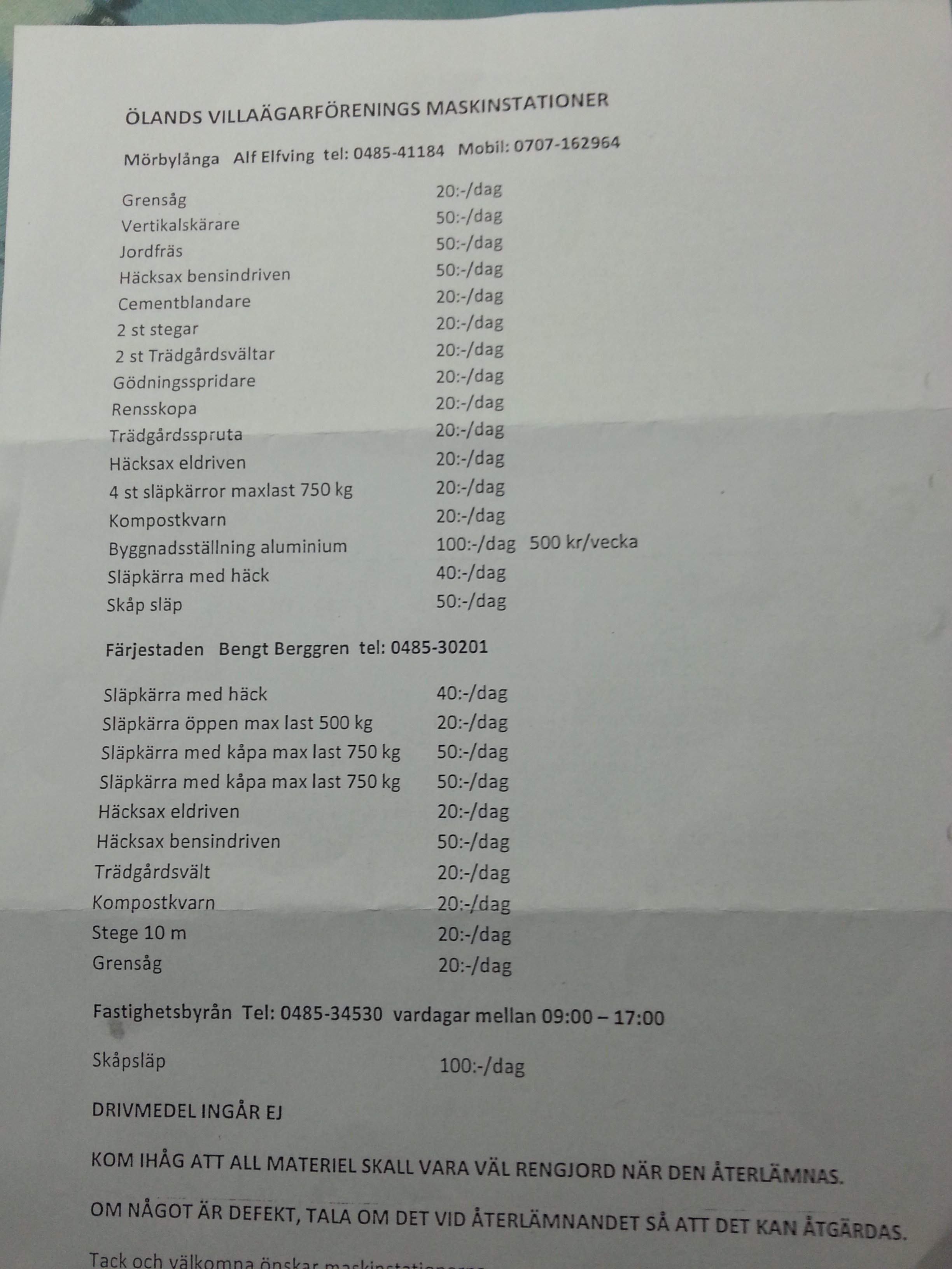 Brf Canasta nr 3 är medlem i Ölands Villaägarföreningen och det ger dig möjlighet att hyra t ex släpkärra till bil, stegar och annan trädgårdsutrustning, Se fil.20140602_183212.jpg